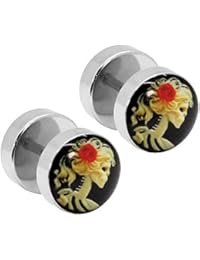 Falsa dilatación de color negro, con calavera, con tornillo, de acero inoxidable: Amazon.es: Joyería Comprar