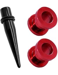 Comprar 1 Pieza Acrílico Dilatador Dilataciones Negro + 2 Piezas Acero Inoxidable Túnel Piercing Pendientes Expansor Rojo